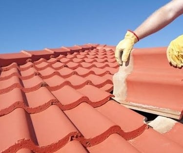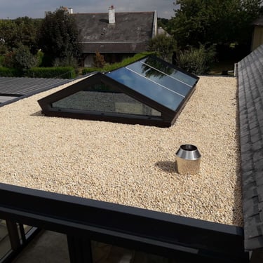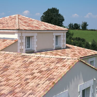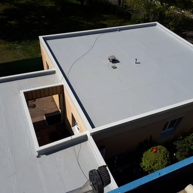 Nettoyage de toiture tuiles, toiture plate membrane bitumeuse , membrane pvc, et gravier. Démoussage et application de l'hydrofuge.